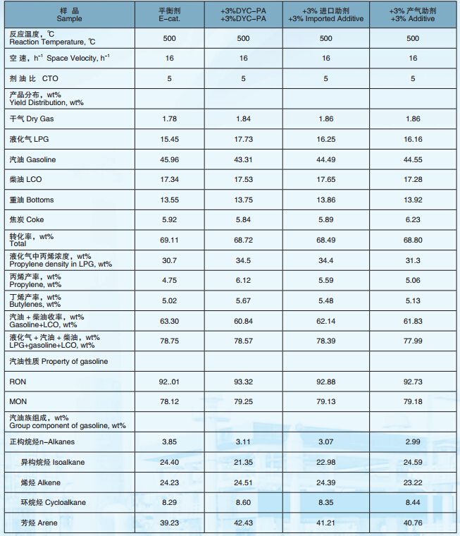 (1)Addition of DYC-PA additive basically has no influence on yield of dry gas, slurry oil and coke in the unit, neither on treatment capacity of the unit.