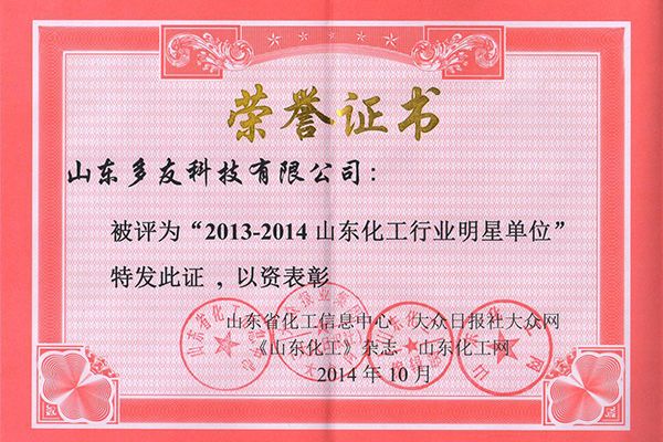 Duo You Technology was named top ten “Star Enterprise” by Shandong chemical industry in 2014.